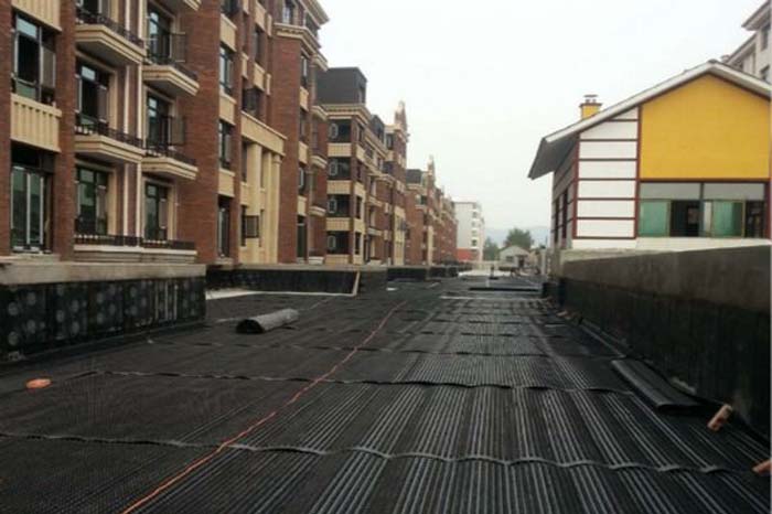 蓄排水板與土工布結合應用與種植屋面上,完全替代了傳統鵝卵石、陶粒蓄排水。塑料排水板與鵝卵石陶粒的比較不僅起到很好的排蓄水作用,一方面保持建筑屋面常年不積水,降低了建筑物的靜水壓力,另方面降低了建筑物的載荷,大大提高了建筑物的安quan壽命。